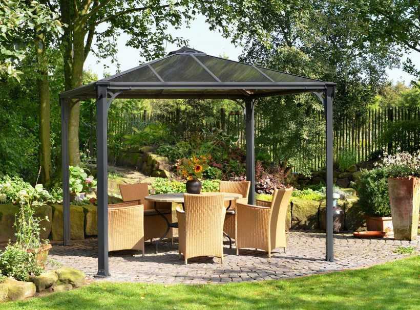 Рыночное предложение в основном включает в себя гораздо меньшие конструкции. Садовые беседки в форме прямоугольника и квадрата размером 3×4, 3×3, 3×5 м. Популярны шестиугольные садовые беседки, которые выглядят очень аккуратно и кажутся небольшими, и предполагают много места.