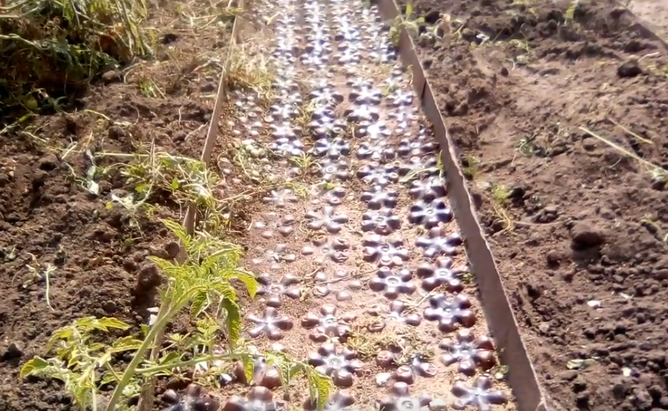 Затем емкости заполняют песком, трамбуют. Для этого просто нужно постучать дном по ровной поверхности, после закрутить крышками. Бутылки с песком установить в траншею в вертикальном положении, и, когда дорожка будет полностью выложена, ее нужно уплотнить.