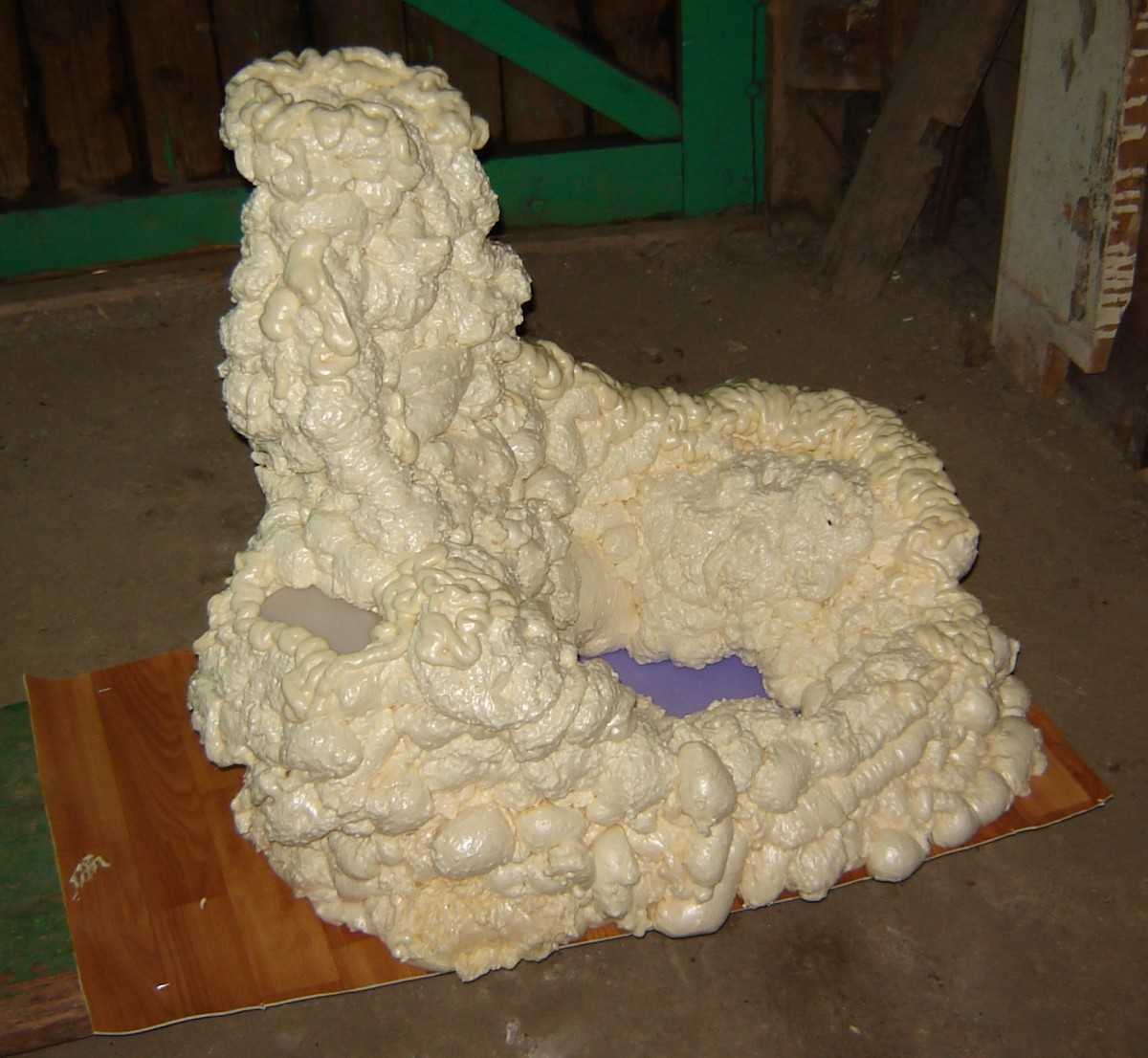 Если фигура состоит из нескольких частей, то потом эти части склеивают. Ровные склеиваемые поверхности зачищают наждачкой, очищают от пыли, наносят на обе поверхности клей (несколько слоев). Затем детали прижимают друг к другу, фиксируют и оставляют на несколько часов.