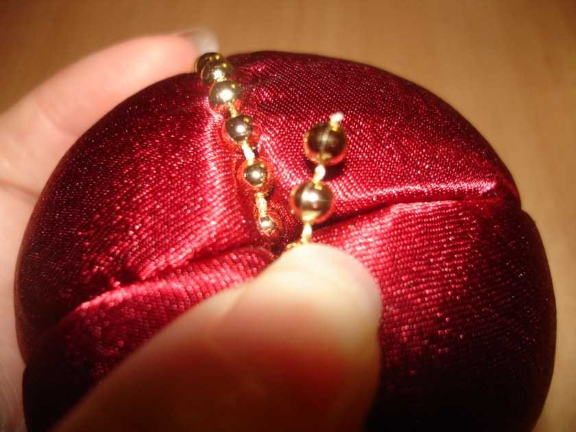 - Выньте веревку, обмотайте ею шарик. Не сильно заматывайте шарик, оставляйте отверстия, через которые вам придется извлекать остатки шарика.