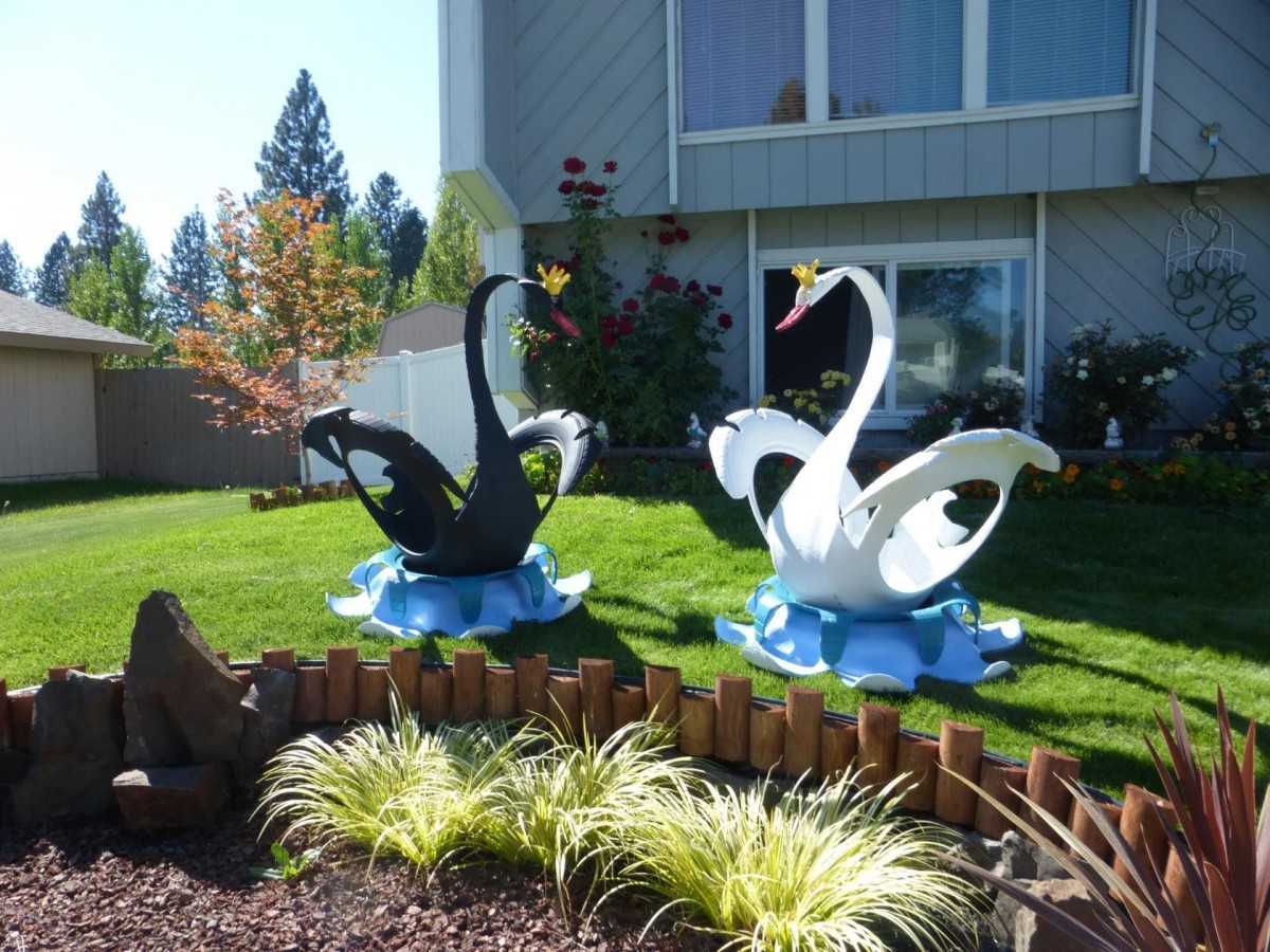 Первое и самое основное правило – садовые скульптуры должны соответствовать общему стилю сада и внешнему виду домика. Не стоит делать фигуры, основываясь только на собственной фантазии. Фигуры необходимо делать не просто красивыми, а такими, чтобы они вписывались в окружающее пространство, иначе они не станут украшением, а, наоборот, изуродуют всю картину.