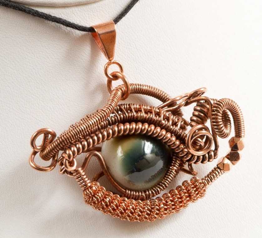 - Медная, бронзовая, латунная проволока отличается оригинальным цветом, отлично гнется и имеет большой запас прочности. Может иметь покрытие из драгоценных металлов. Активно используется для создания предметов украшений разного назначения. При работе применяют дополнительный декор в виде бусин и искусственных камней.