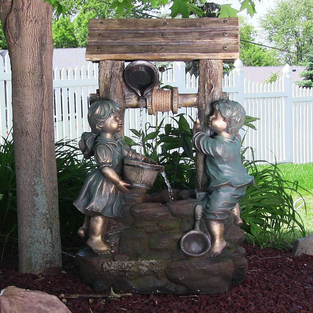 Скульптуры и гипсовые фигурки. Один из самых простых и популярных вариантов финишного оформления надземной части фонтана. Фигурка может быть приобретена в готовом виде или выполнена самостоятельно. Она может быть одна или образовывать сюжетную композицию.