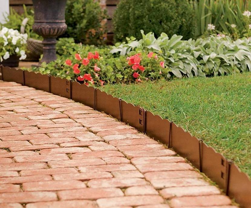 Секционные ограждения. Состоят из набора одинаковых деталей с крепежными элементами. Монтаж ограды напоминает игру с детским конструктором – быстро и легко; итогом становится аккуратная дорожка или изящная клумба.