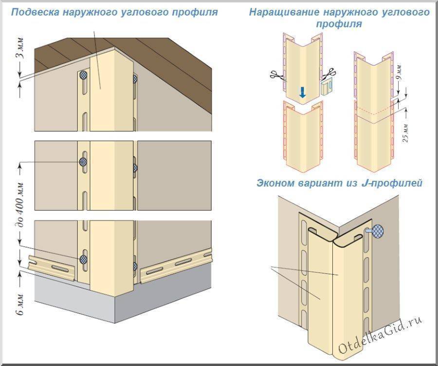 Если высота фасада больше 3 м, то направляющие придется накладывать друг на друга. Снизу должен быть целый профиль, а верхний следует подрезать. Рейки необходимо состыковать на одном уровне во всех местах.