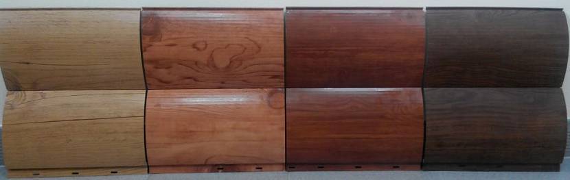 Благодаря тому, что ассортимент вариаций внешнего вида панелей достаточно велик, есть возможность приобрести любую желаемую породу дерева, а также выбрать необходимый диаметр «бревен». Для имитации древесных пород выбраны одни из самых популярных деревьев, например, сандал, сосна, дуб.