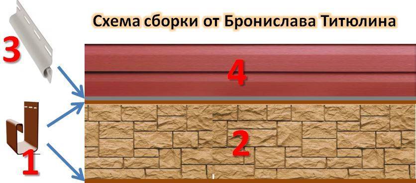 Как видите, всё довольно просто. Такимо бразом вы можете без труда научиться стыковать не только сайдинг и фасадные панели, но и абсолютно разные типы материалов. Теперь рассмотрим второй вариант монтажа — вертикальную стыковку. Здесь тоже нет ничего сложного. Посмотрите на схему: