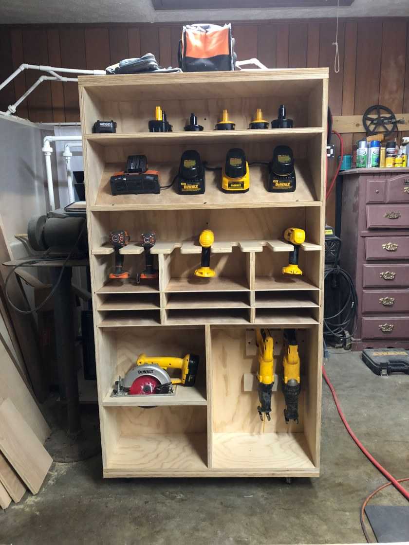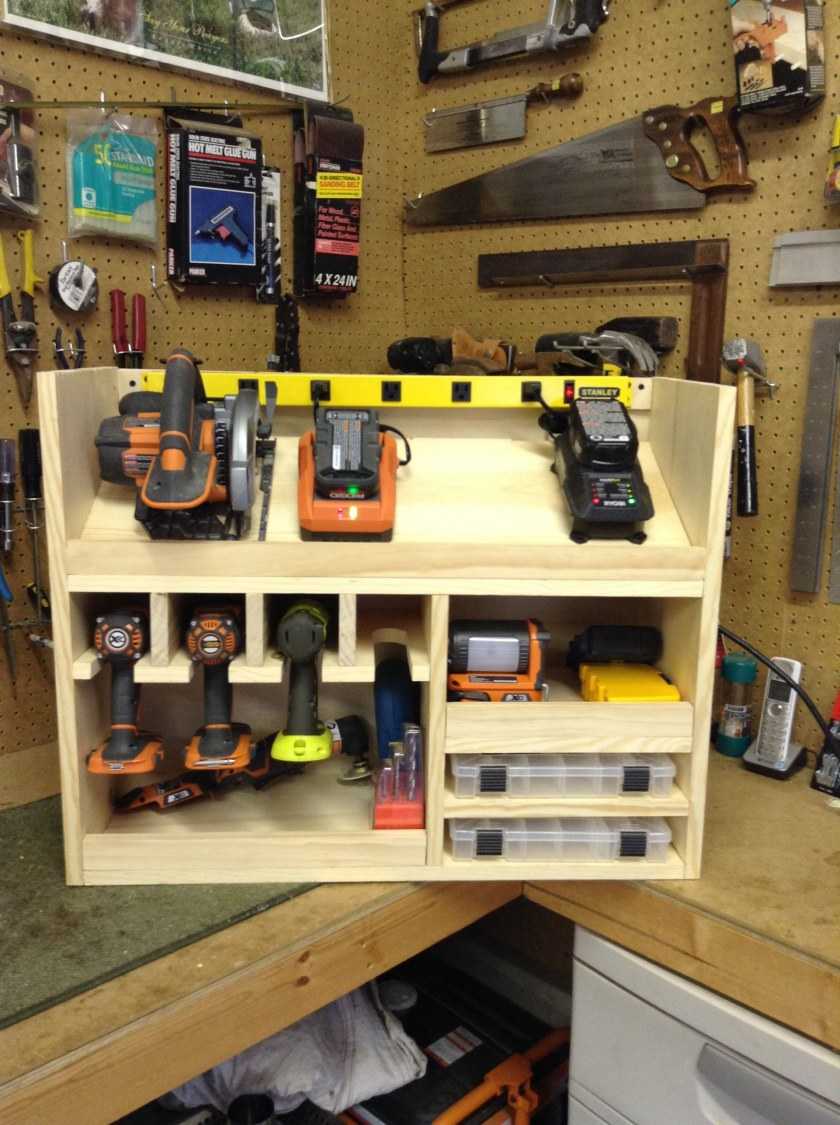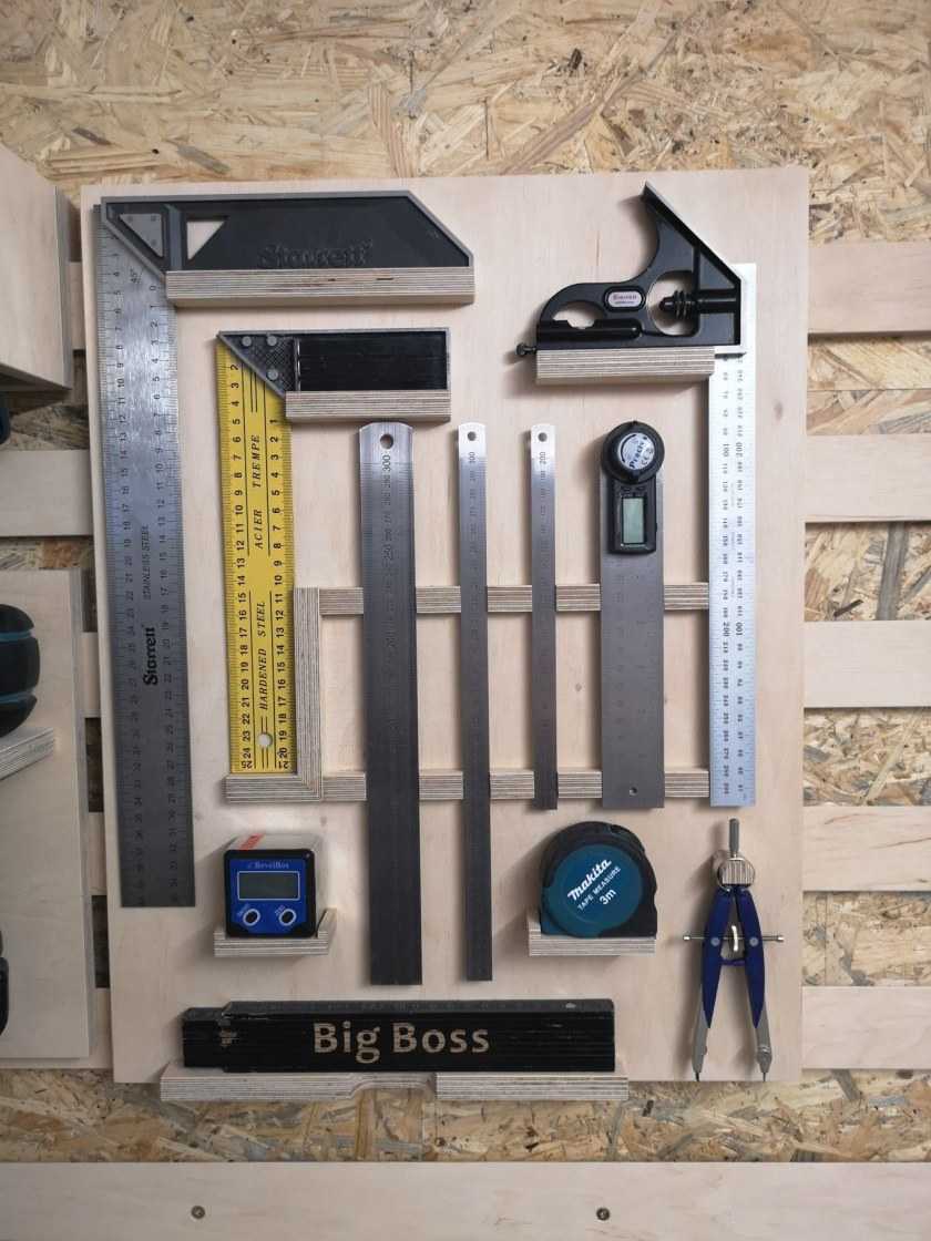 Такой же вариант, как и представленный на фото, можно использовать в самоделках для дачи, там ведь тоже часто нужно обустраивать мастерскую, причем места для нее выделяют даже меньше, чем остается в гараже. Для такой конструкции вам необходимо будет соорудить каркас из деревянных досок, а по верхнему и нижнему его ребру сделать надсечки, куда будут вставляться ячейки. Скорее всего, вдохновением для такой конструкции послужили классические ульи, которые используются при разведении пчел, система тут точно такая же. Листы, которые вставляются внутрь имеют перфорированную поверхность и наличие этих небольших дырочек позволит вам вкрутить внутрь гвоздики, повесить крючки, чтобы развесить инструменты и полезные девайсы максимально удобно, чтобы они не слетали при выдвигании и задвигании.