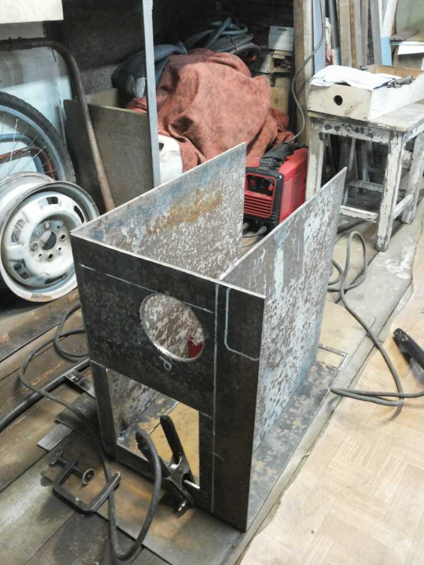 - Делают станину станка из металлического листа с приваренными снизу опорными уголками.