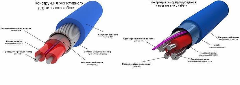 Существует два вида кабелей: резистивные и саморегулирующиеся.