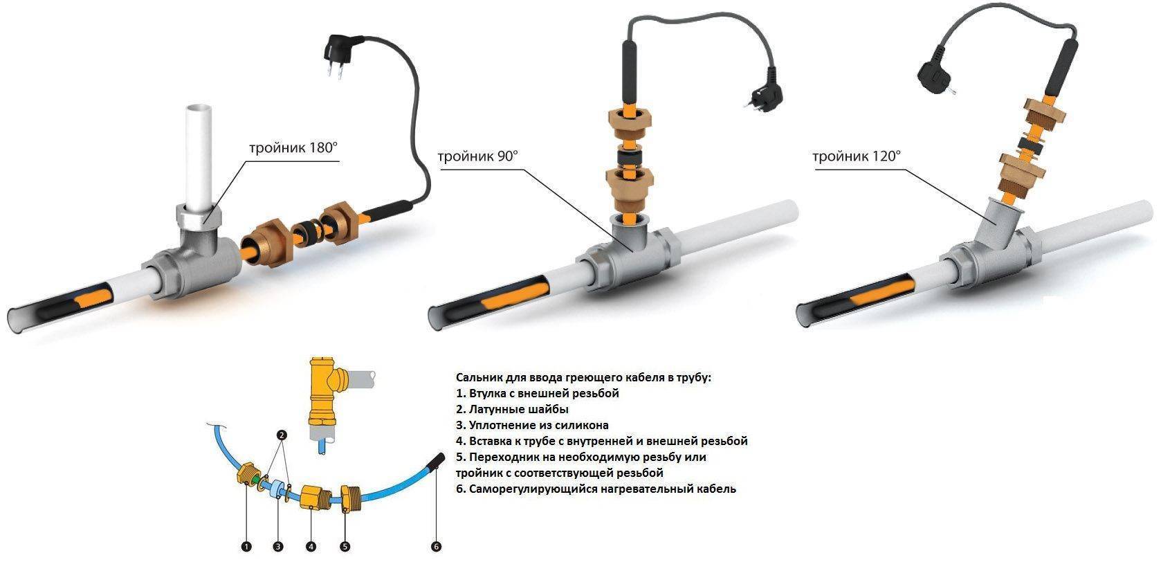 Виды тройников для монтажа греющего кабеля внутри водопровода