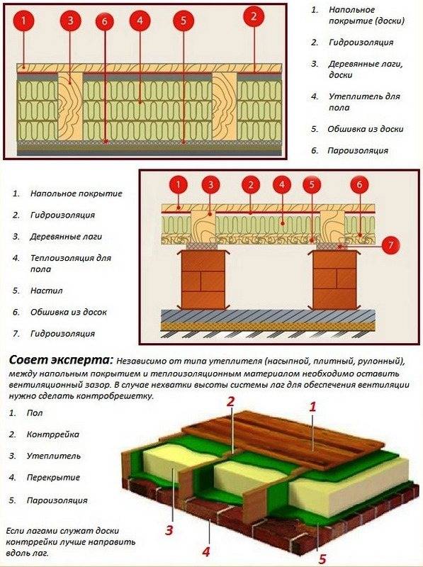 Теплоизоляция пола в деревянном доме может быть выполнена несколькими способами: