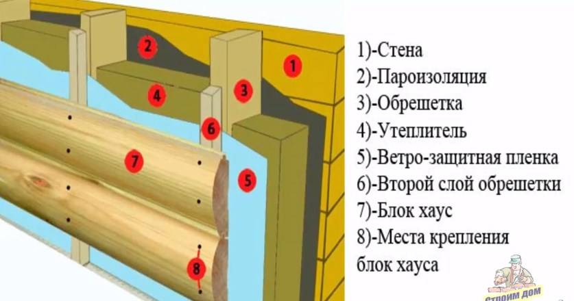Вариант пирога обшивки деревянной вагонкой или блок-хаусом