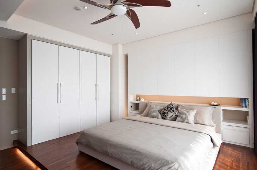 Нередко идеальным решением для небольшой спальни служит кровать, оснащенная подъемным механизмом. В нижней части такой кровати размещены вместительные ящики для хранения вещей. Размещение в спальне такой кровати решит проблему с хранением постельных принадлежностей, одеял, подушек, пледов и прочих объемных вещей.