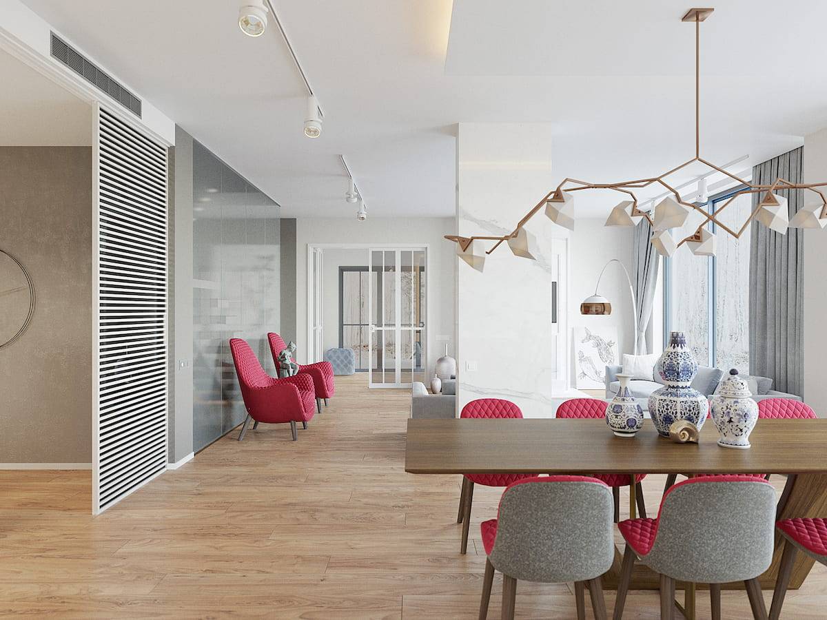 Дизайн-проект гостиной в современном стиле ограждает в дальнейшем от ошибочных шагов и бессмысленных метаний, удорожающих работы. В процессе его создания моделируются и окончательно выбираются различные варианты планировки, отделочных материалов, цветового оформления и пр.