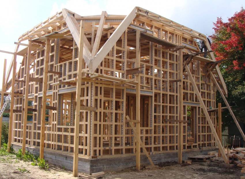 Суть данной технологии заключается в возведении сначала конструкции из стоек и балок, с последующей обшивкой внутри и снаружи