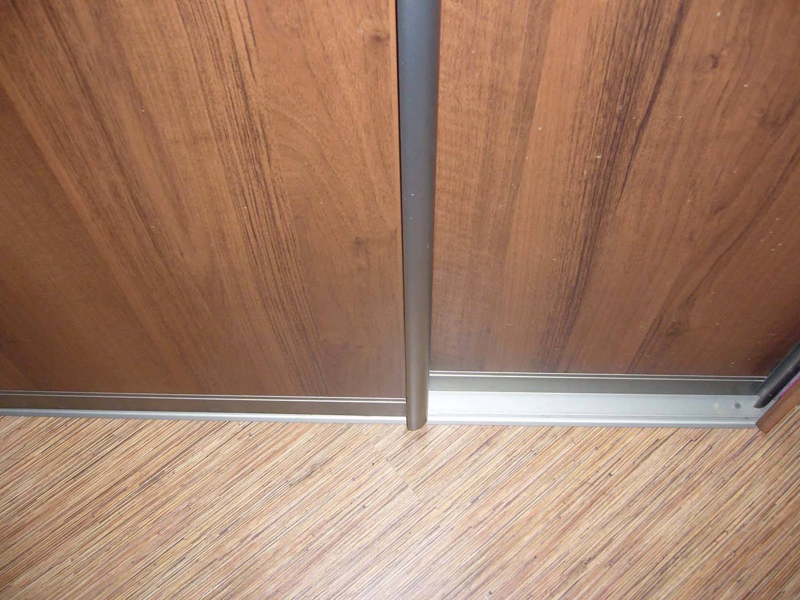 Если шкаф-купе — стационарный, для плотного прилегания к стене помещения понадобится разборка части плинтуса. Возможно, проще вообще демонтировать его.