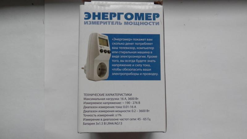 Ваттметр — бытовой измеритель мощности (портативный счетчик потребляемой электро энергии, энергометр) предназначен для измерения и анализа потребляемой мощности, подключёнными к нему устройствами. Ваттметр это устройство, которое показывает потребление и стоимость энергии ваших бытовых приборов. По своей сути является мобильным счетчиком потребленного электричества. Этим счетчиком можно измерить сколько электричества потребляет тот или иной прибор, умножить на стоимость единицы электроэнергии и получить стоимость использования прибора. Идеально подходит для измерения потребленной мощности приборов с непостоянным потреблением (например, стиральная машина) Функции: 1. Измеритель потребляемой мощности (Ватт). 2. Сумма потребленной электроэнергии (КВт*ч). 3. Напряжение в Вольтах и частота в Герцах. 4. Сила тока в Амперах и коэффициент мощности (значение 1 — идеальное). 5. Минимальное значение мощности за период измерения 6. Максимальное значение мощности за период измерения. 7. Стоимость потребленной электроэнергии.