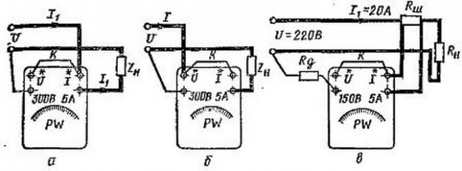 От правильности подключения ваттметра в конкретной части электроцепи зависит точность полученной информации. Надлежащая схема подключения ваттметра будет выглядеть таким образом: неподвижную катушку ваттметра последовательно соединяют с нагрузкой либо потребителями электричества.