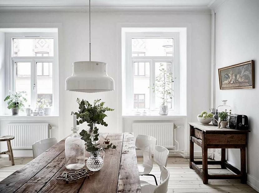 Стол-подоконник может стать дополнением к полноценной обеденной зоне и служить местом для быстрых перекусов.