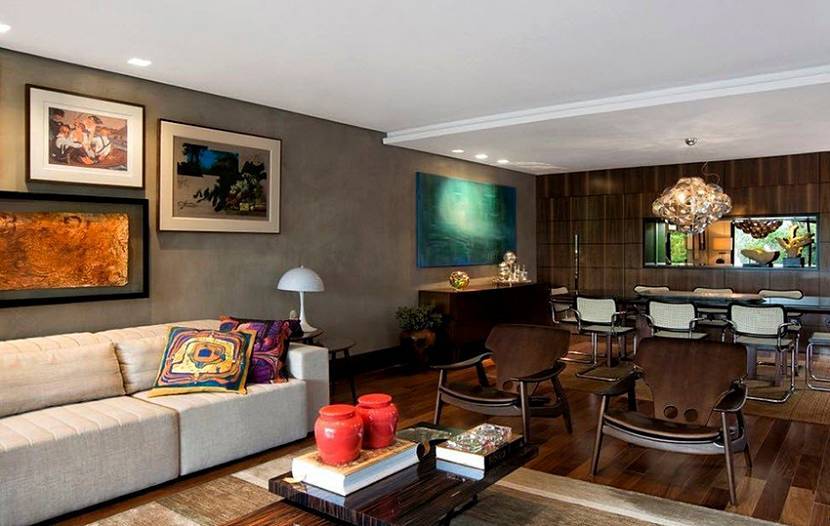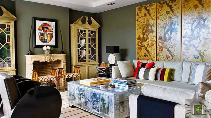 Эклектика – это уютная спокойная гармония классики и родственных ей ренессанса, барокко. Большой классический диван в гостиной со светлой обивкой, с такими же светлыми стенами будет хорошо смотреться рядом с журнальным столиком стиля барокко, а их тандем акцентирует многоцветный яркий ковер, на котором они установлены, и шторы из дорогого текстиля.