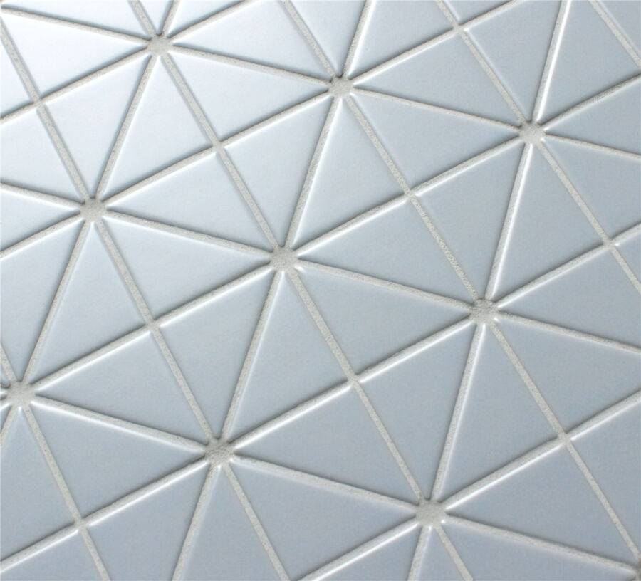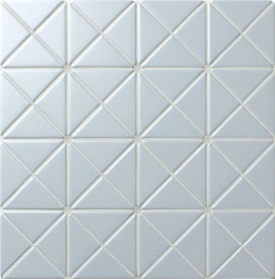 Больше подойдет однотонная матовая плитка светлых оттенков или с бледным, не слишком активным узором, среднего формата без контрастной затирки.