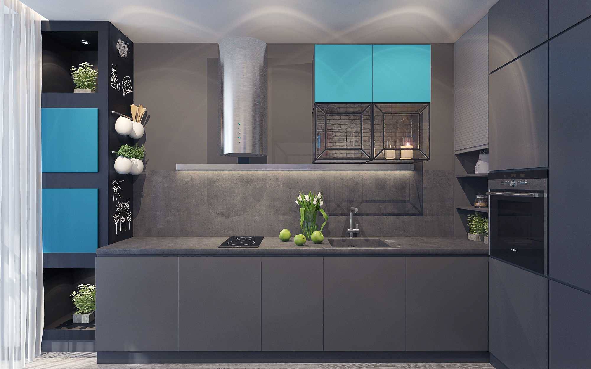 Идея применения голубого в кухонном пространстве