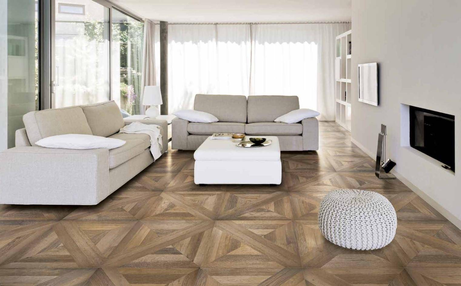 Наиболее востребованной остается обычная кафельная плитка с двойным рисунком и покрытием из плавленых окислов кремния. Популярность напольной керамики под ламинат объясняют огромным выбором рисунков и текстур. Двойная полиграфия, когда рисунок наносится дважды, до и после обжига, гарантирует очень точную передачу фактуры шлифованной древесины, характерной для большинства сортов ламината.