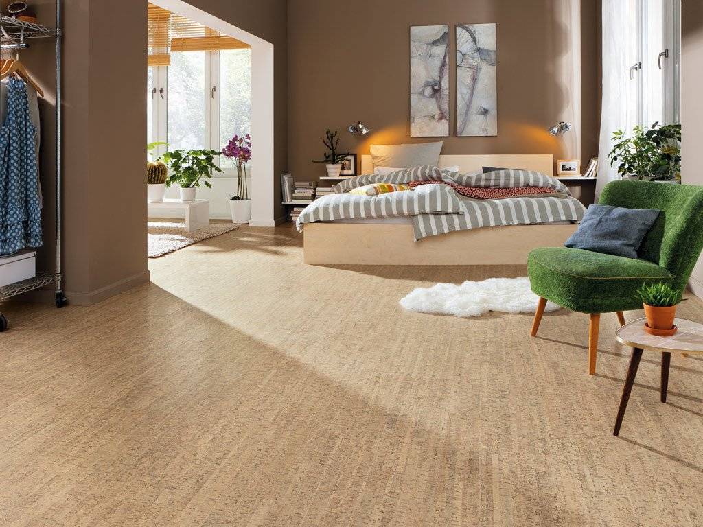Пробковое покрытие – это мягкий, приятный на ощупь экологичный материал, который имеет массу преимуществ. Пробка обладает звукоизоляционными свойствами, имеет теплую поверхность и служит достаточно долго. Так же пробковое покрытие обладает ортопедическими свойствами за счет амортизации. Подойдет для отделки детской, спальни и гостиной.
