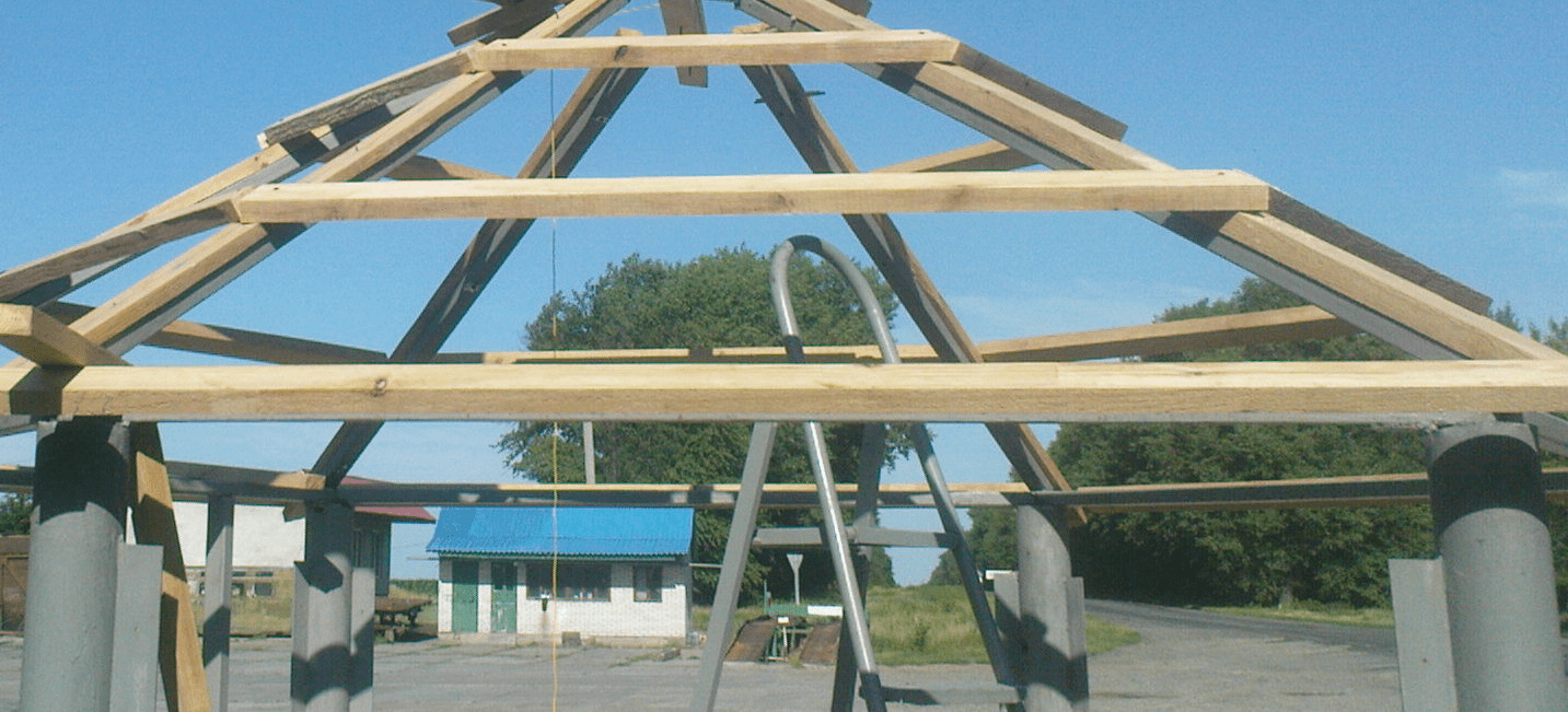 Каркас крыши предпочтительнее собирать на земле, с последующим подъемом собранных элементов наверх. В случае необходимости осуществлять сборку крыши сразу наверху, следует предварительно собрать верхнюю обвязку опорных столбов беседки. Самой удачной является скатный вариант крыши, так как он отличается большей прочностью, да и сама беседка внешне получается более высокой