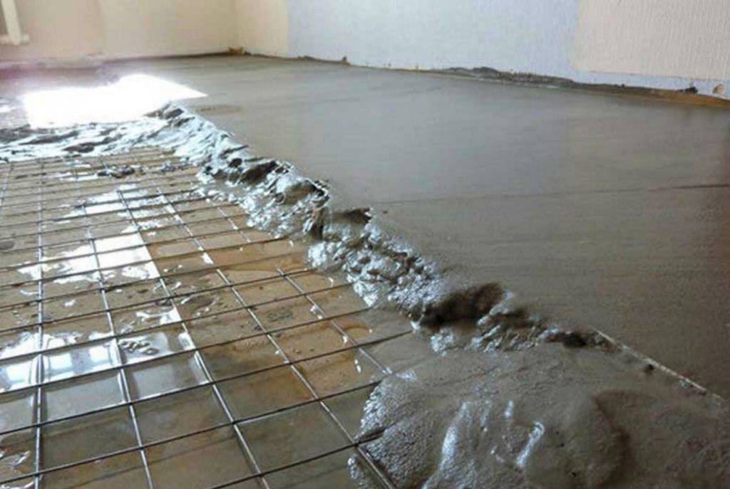 Укрепление половой стяжки сеткой требуется при слишком большой или слишком маленькой толщине выравнивающего слоя. Если толщина будет большой (от 10 сантиметров и выше), то укладывать необходимо арматуру с достаточно большим размерами ячеек. Подходящим будет диаметр проволоки порядка 4-5 миллиметров. Когда толщина выравнивающего слоя менее 50 миллиметров, то используют сетку с более мелкими ячейками.