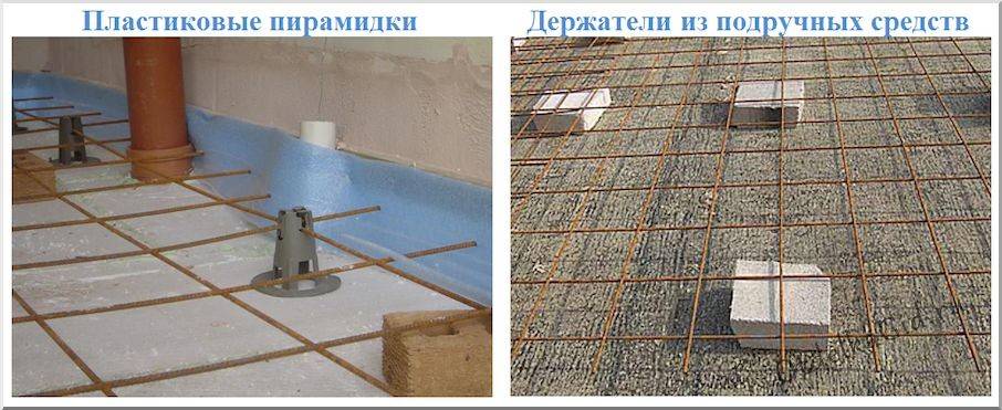 Использование специальных пластиковых пирамидок не является обязательным, если технические условия позволяют, то сетку укладывают на подручные средства