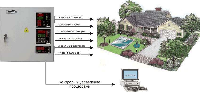 По заложенной программе запускается котел, при нагреве котла до нужной температуры включается циркуляционный насос. После непродолжительного времени, вся система обогрева дома нагревается до рабочих температур и поле прогревания дома, система переходит либо в спящий режим, либо в режим поддержания тепла. Любая современная автоматика позволяет работать: