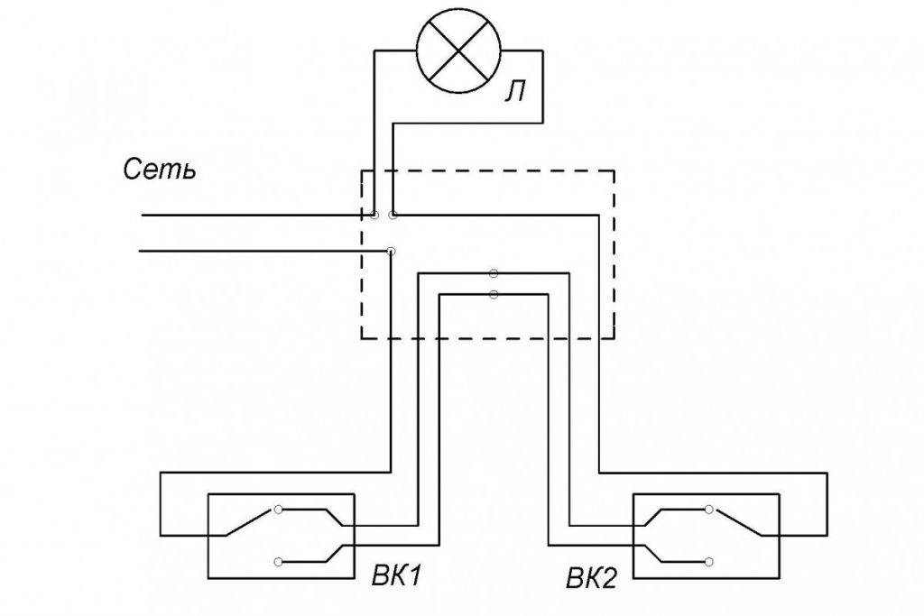 Как подключить проходной выключатель