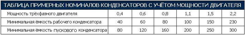 Емкость пускового конденсатора берется из расчета 2–3 Сраб .