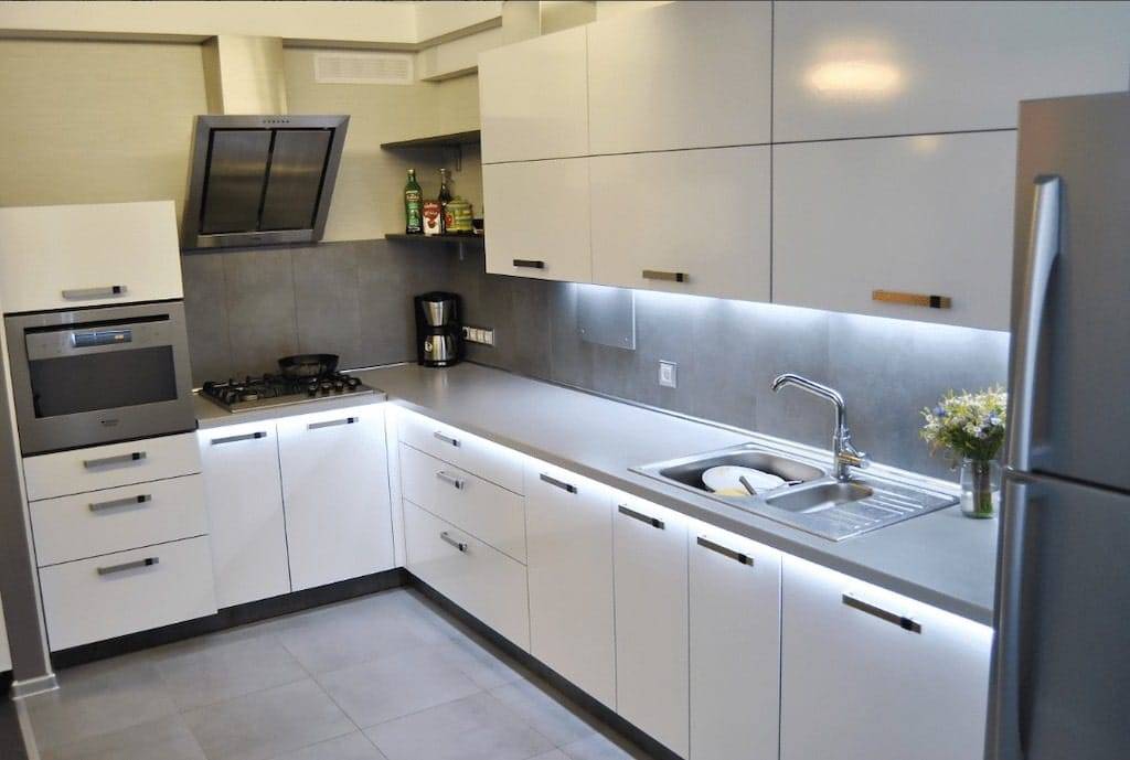 Нельзя сказать, какой кухонный гарнитур будет самым удобным. Кажется, что лучше линейной формы большого гарнитура и придумать сложно. Но многие хозяева предпочитают ему угловую (Г-образную) кухню, которая максимально рационально вписывается в пространство.
