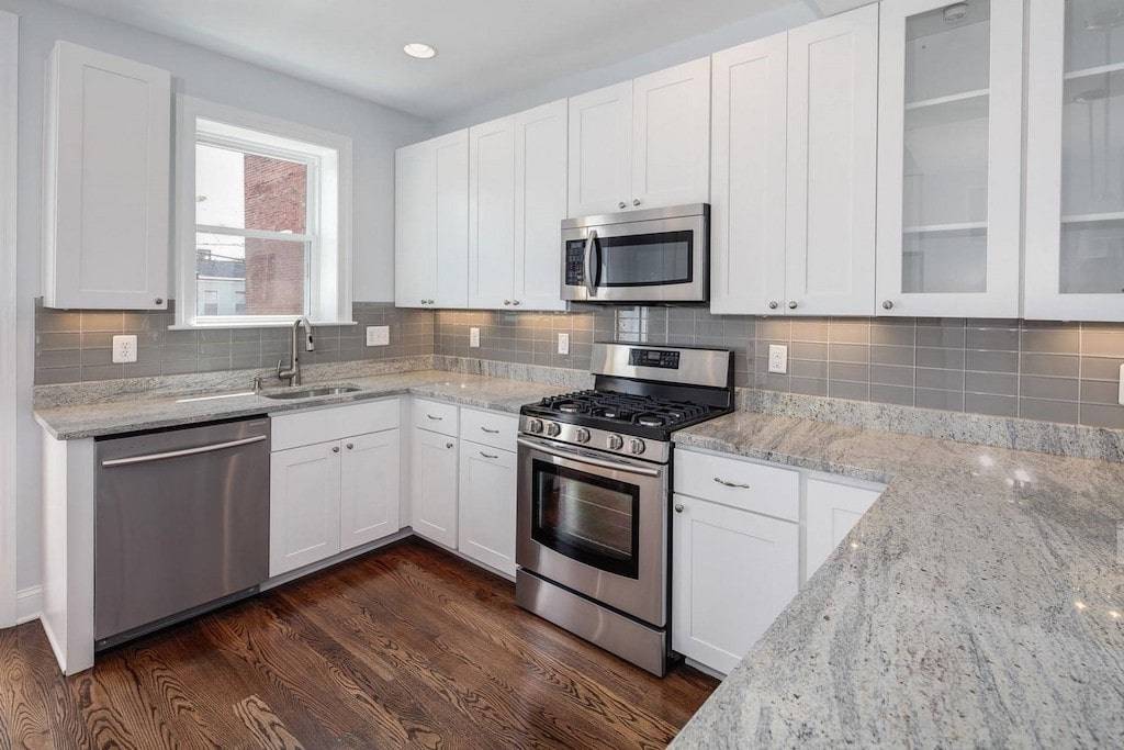 Белый гарнитур не зря считается универсальным. Такие фасады прекрасно сочетаются с разными оттенками, при этом кухня может быть вся белая (что в последние годы считается особенно актуальным).