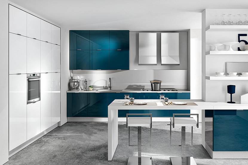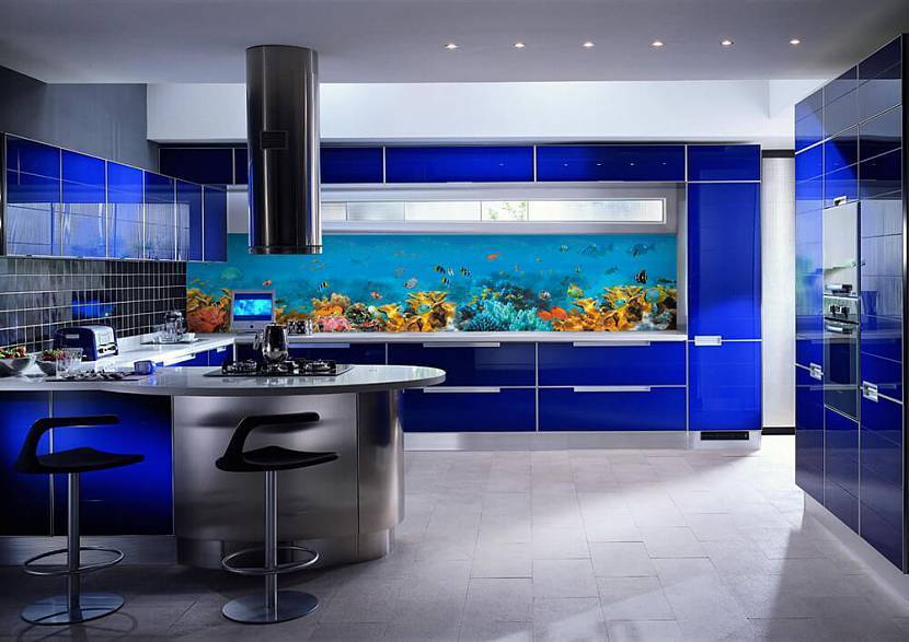 Хай-тек – оформление кухонного пространства в синем оттенке будет выглядеть ярко и стильно. Все тона подойдут для дизайна hi-tech