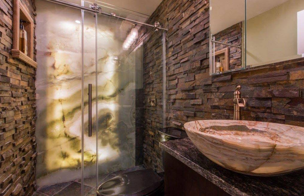 Перед началом ремонта необходимо сделать выбор облицовочного материала, самыми популярными из которых являются кафельная и стеклянная плитка. В просторных помещениях используют и керамогранит, и материал из камня.