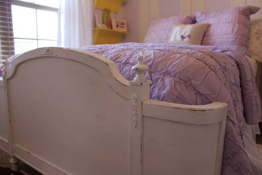 Дополнить сиреневую спальню с белой мебелью можно декоративными аксессуарами, выполненными в бежевой тематике. Такой цветовой баланс создает атмосферу легкости, восполняет недостаток света и способствует визуальному увеличению пространства.