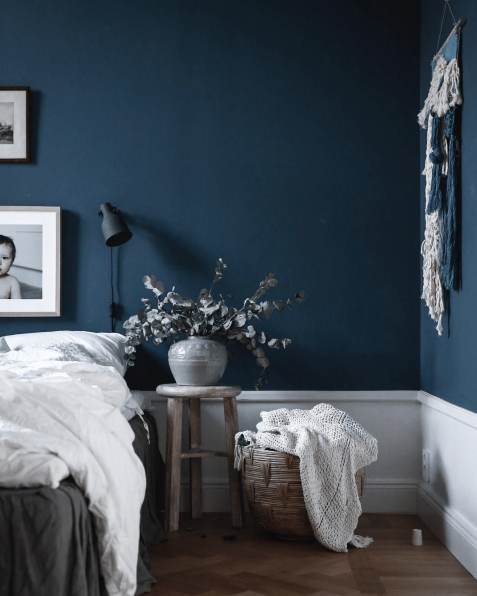 Но все же есть определенные нюансы в зависимости от выбранного оттенка. Ведь на самом деле диапазон достаточно широк: от нежного лавандового до глубокого синего тона. Поэтому интерьер может быть как темным, так и светлым. Классический цвет подойдет для любой спальни, но в то же время он требует наличия более светлых, нейтральных оттенков. В свою очередь, светло-синий цвет позволяет сделать пространство визуально больше. Кроме того, он поднимает настроение, успокаивает и вдохновляет. Поэтому данный вариант особенно часто выбирают для спальни. Если же необходимо создать особенно уютную с ноткой загадочности атмосферу, смело выбирайте глубокий синий цвет для ее оформления.