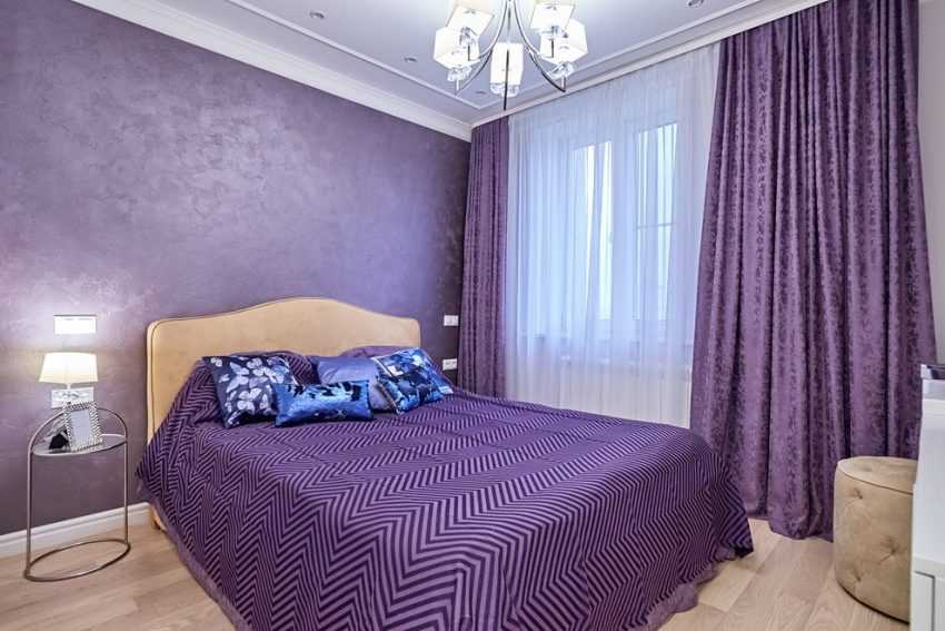 Есть ли комната выполнена в бежевых красках, то добавить изюминку помогут сиреневые шторы в спальне. Чтобы интерьер не казался безвкусным дизайнеры используют несколько оттенков фиолетового, заключающегося в напольном покрытии, осветительных приборах, декоративных элементах.