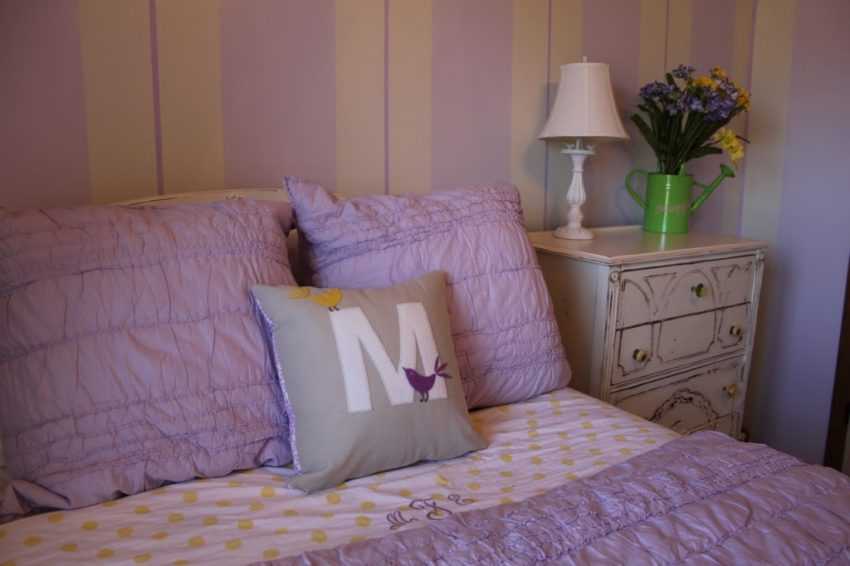 Чего только стоит образ восхитительных божьих коровок на зелёненькой лужайке, уютных засыпающих домиков, цветущих растений. Салатными, лиловыми текстильными изделиями, покрывалом с динамичным цветом или лоскутным шитьём кардинально меняют комнату.
