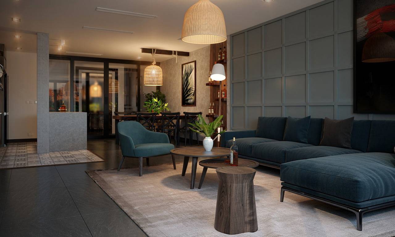 Что касается материалов, синий цвет является лучшим выбором и лучшим вариантом для таких натуральных материалов, как ротанг и дерево. Он также образует идеальный дуэт с мрамором и камнем.