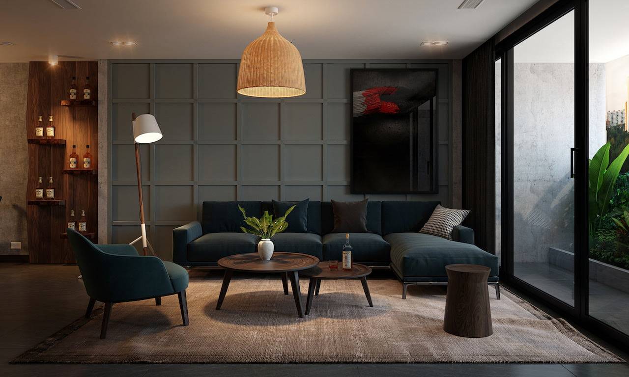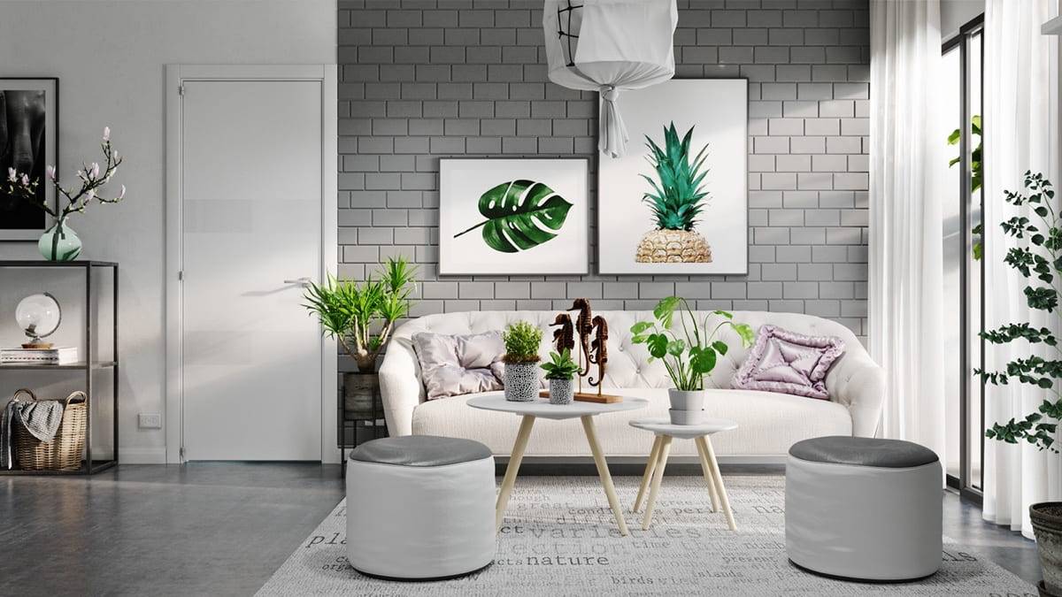 Акцентируйте внимание на какой-либо группе предметов, к примеру, на диване или журнальном столике.