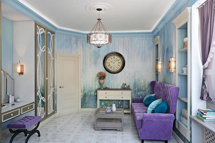 Добавление небесного оттенка к лавандовому зрительно расширяет комнатуИсточник expressdesign96.ru