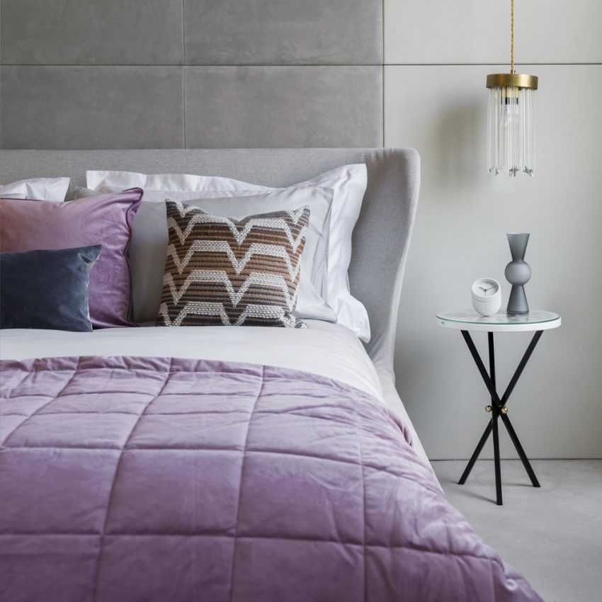 - Подходят для сна и отдыха, поэтому часто стены в сиреневых тонах оформляют в спальне;
