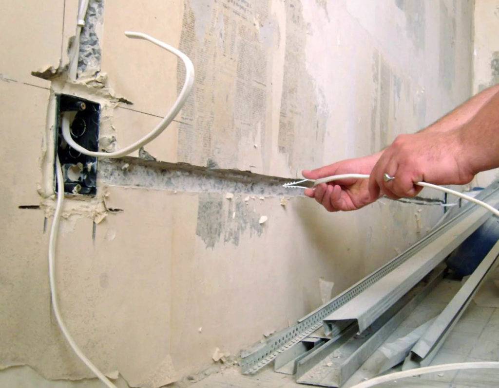 Проведение проводов на изгибах возможно только под прямым углом, иначе будет невозможно определить, где находится скрытый от глаз провод, если вдруг придется сверлить стену.