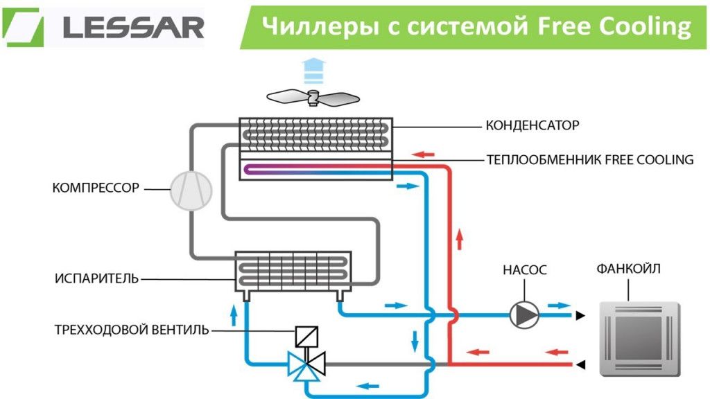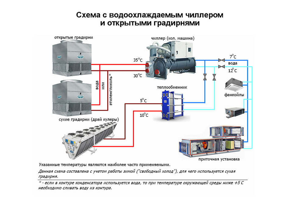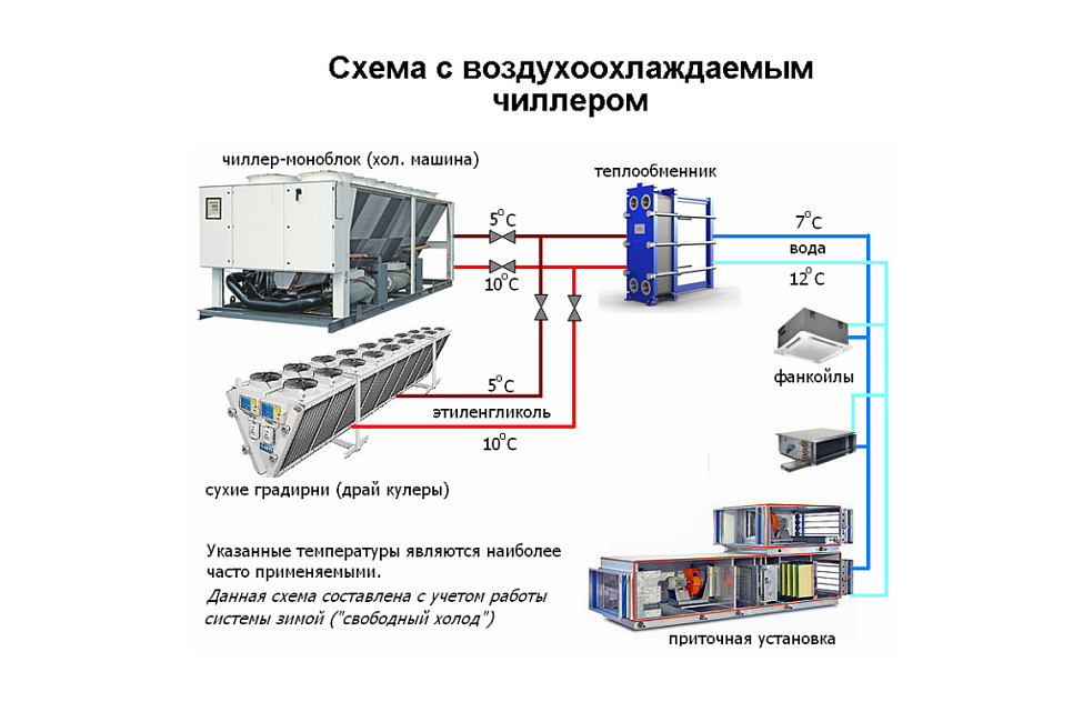 Схема чиллера с выносным конденсатором и зимним пуском