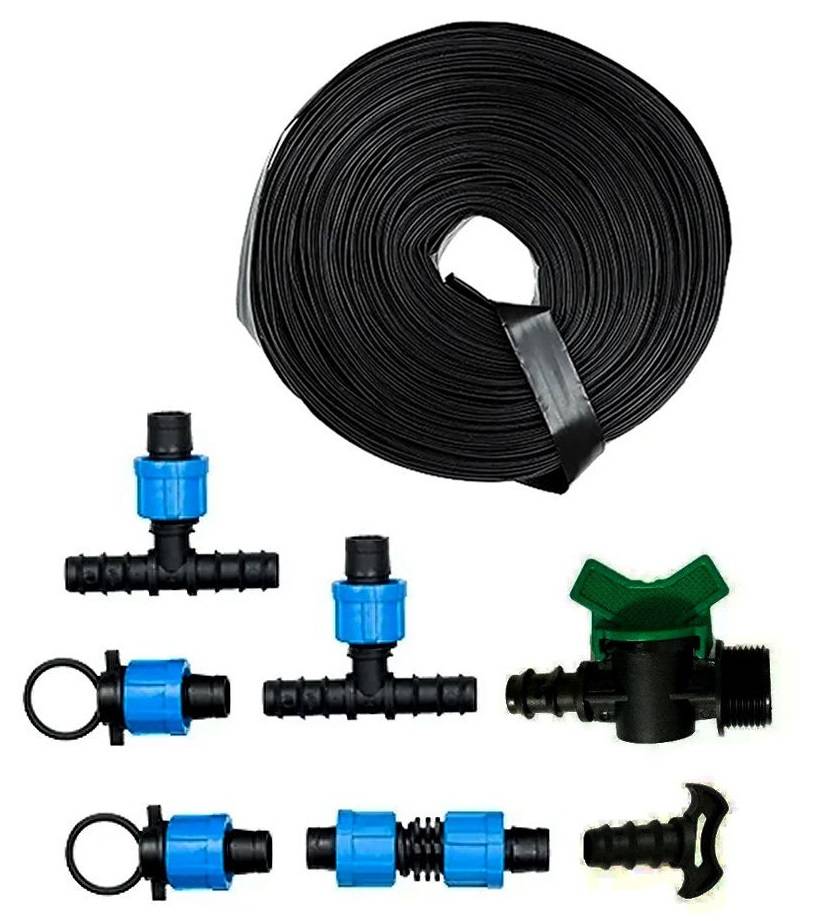 Комплектация включает в себя шланг длиной 10 метров, соединитель и тройник, фильтр для очистки, капельницы и коннектор. Прилагается инструкция, которая подробно объясняет процесс монтажа.